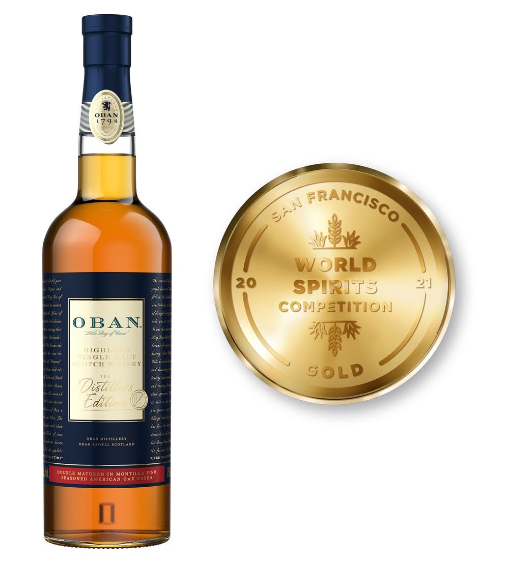 Experience the distinctively graceful style of Oban Distillers Edition Highland Single Malt Scotch Whisky. For this special release, the Master Distiller of Oban has chosen Montilla Fino casks to underline its sea-laced flavors. This dry, delicate cask wood beautifully enhances the style of Oban. To fully experience this exquisite Distillers Edition, simply serve neat. Includes one 86 proof 750 mL bottle of Oban Distillers Edition Highland Single Malt Scotch Whisky. Oban, or "Gateway to the Isles", was founded in 1794 by John and Hugh Stevenson. While it has undergone many improvements since 1883, today our whisky is made using only the finest barley, malted to the distillery's own particular specifications and finally distilled using lamp glass-shaped stills. Marrying the sea air character of the Island malts to the soft, fruity style of the Highlands, Oban's attractive West Highland character reflects its location and makes for an unforgettable drinking experience. Please drink responsibly. Alcohol by volume: 43%