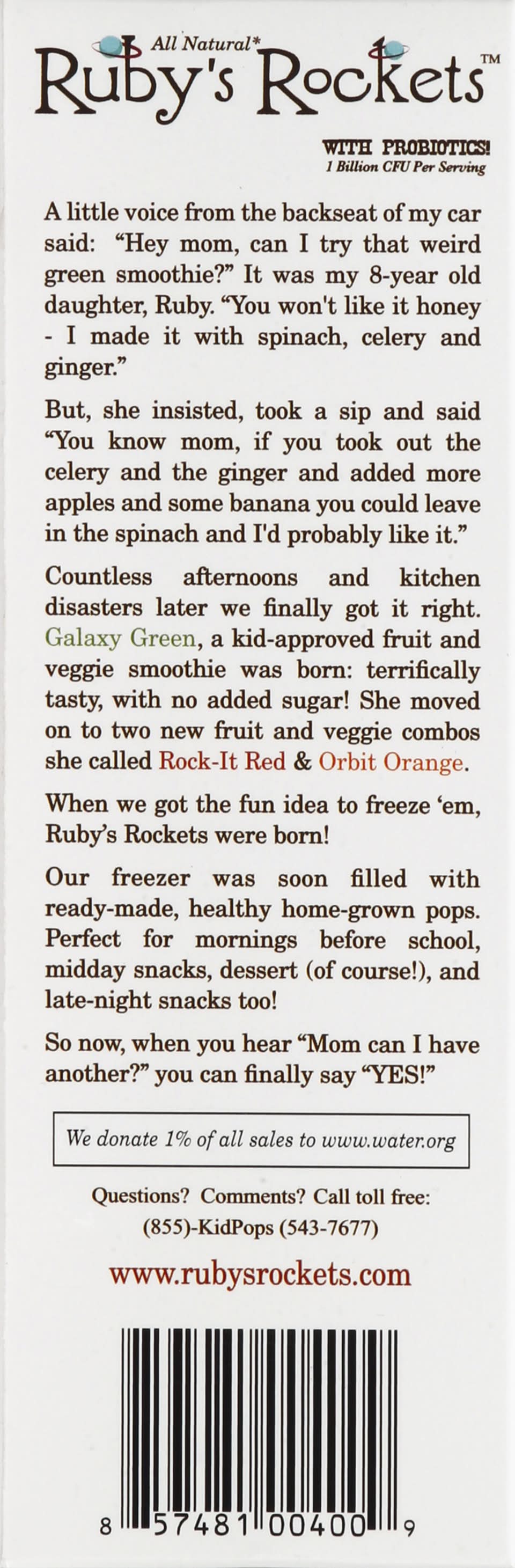 Ruby's Rockets Fruit & Vegetable Pops, Orange (10.56 fl oz, 6 ct)
