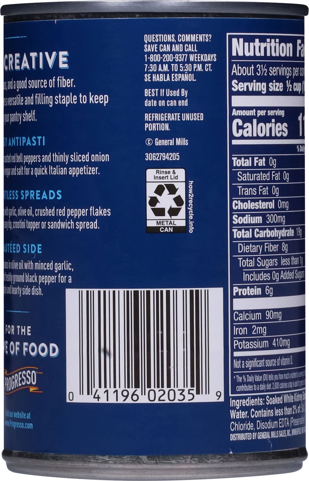 Cannellini • Number of servings: 3 • General Mills Sales, Minneapolis, MN, 55440, Ph: 800-200-9377 • Packaging: Reusable