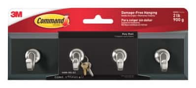 Purchase the Command Key Rail at Michaels. The 3M Command Slate Key Rail is the perfect alternative for nails and screws. Available in multiple colors. 8" x 2.125" x 1.5" (20.32cm x 5.4cm x 3.81cm). Holds up to 2 lb. (900 g). Removes cleanly. Easy to reposition and reuse. 1 key rail with 4 hooks6 small strips. Command Key Rail