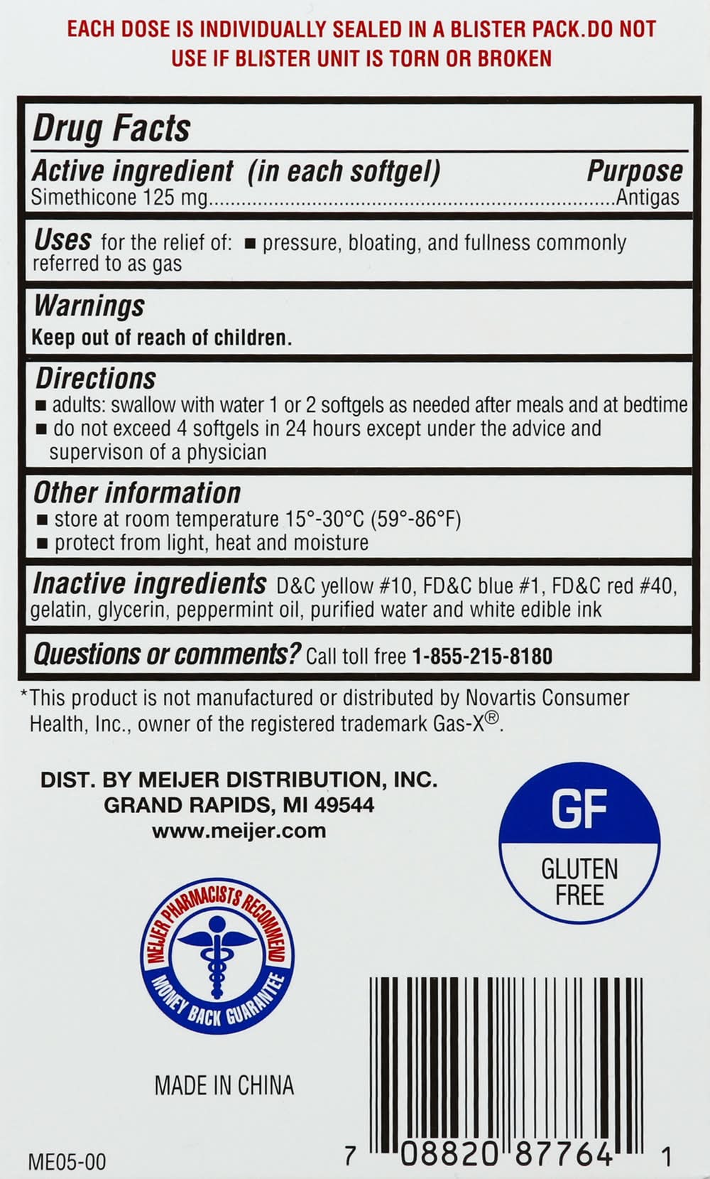 Gas Relief, Extra Strength, 125 mg, Softgels MEIJER,