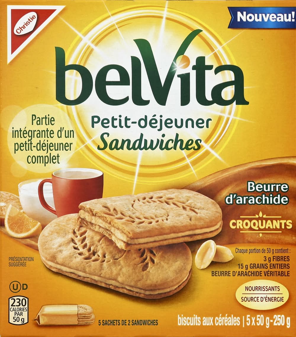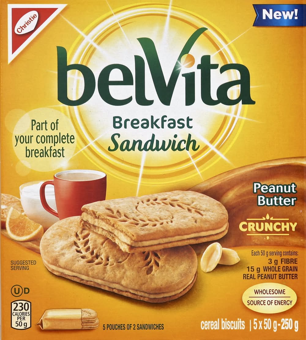BelVita Breakfast Cereal Sandwich Biscuits, Peanut Butter (50 g, 5 ct)