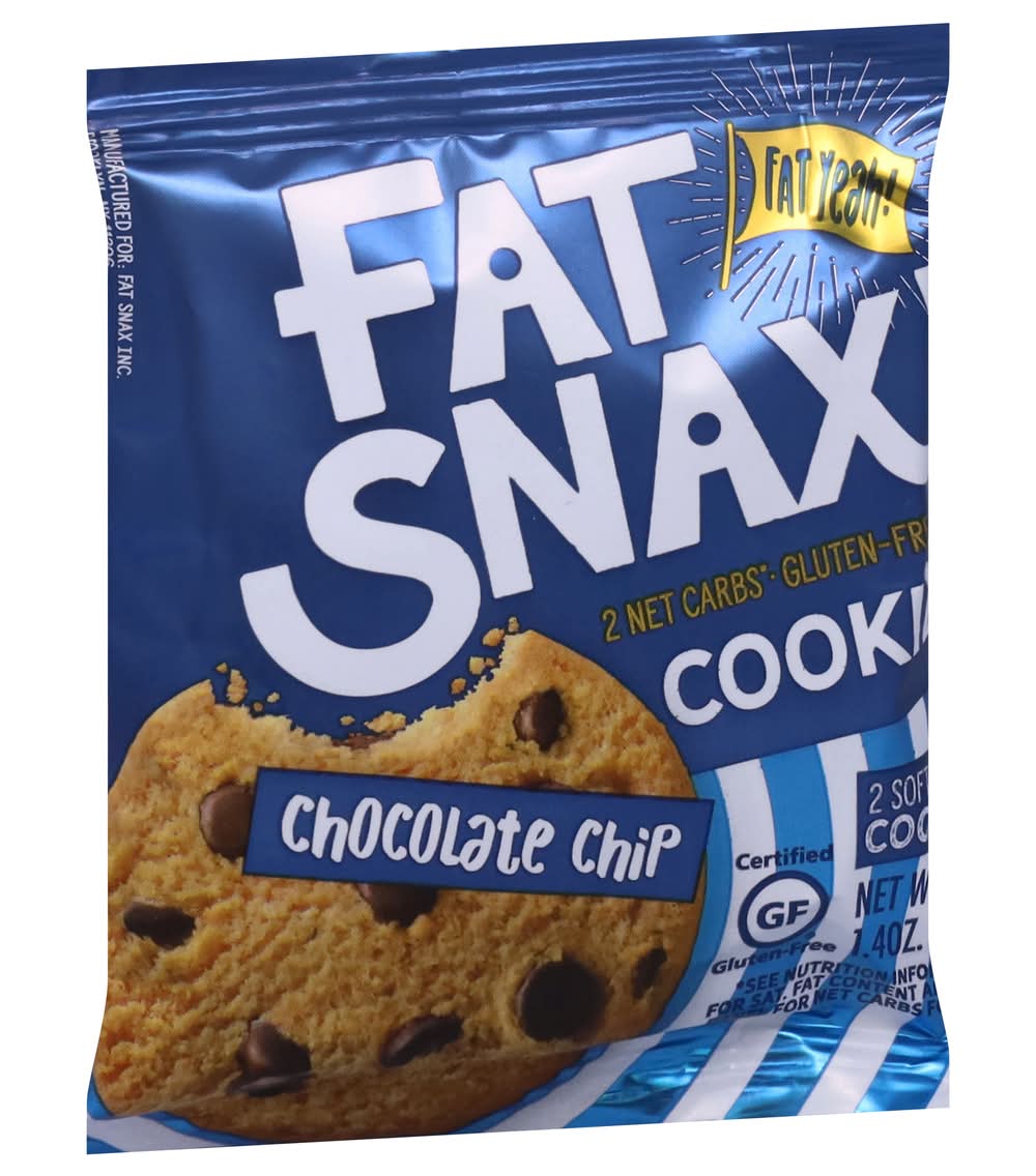 2 soft-baked cookies. 6 g total carbs - 2 g fiber - 2 g sugar alcohols = 2 g net carbs. Gluten-free. Certified gluten free. Keto. 2 net carbs (See nutrition information for sat. fat content and panel for net carbs formula). Fat yeah! Snack away! You can eat fat and be fit. We cut down the carbs. Without sacrificing taste. we create unapologetically fat-filled snacks, so you can have your cookie and eat it too. Facebook. Instagram. Twitter. (at)eatfatsnax. (hashtag)fatyeah. Fat Snax, Brooklyn, NY, 11206