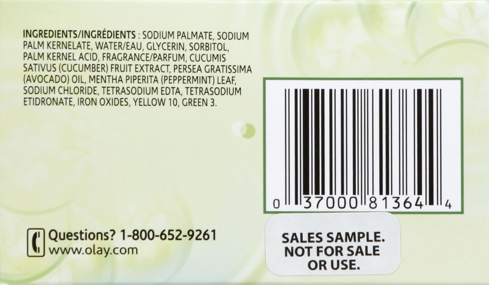 Sodium Palmate, Sodium Palm Kernelate, Water/Eau, Glycerin, Sorbitol, Palm Kernel Acid, Fragrance/Parfum, Cucumis Sativus (Cucumber) Fruit Extract, Persea Gratissima (Avocado) Oil, Mentha Piperita (Peppermint) Leaf, Sodium Chloride, Tetrasodium EDTA, Tetrasodium Etidronate, Iron Oxides, Yellow 10, Green 3