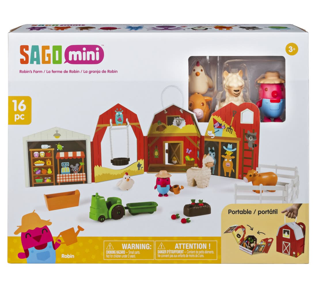 Sago Mini Robin’s Farm Portable Playset With Figures For Ages 3 and Up (16 ct)