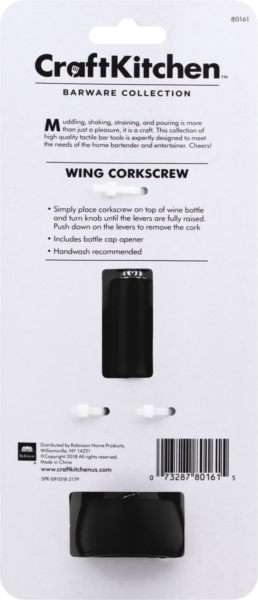 Muddling, shaking, straining, and pouring is more than just a pleasure, it is a craft. This collection of high quality tactile bar tools is expertly designed to meet the needs of the home bartender and entertainer. Cheers! Wing Corkscrew: Includes bottle cap opener. Lifetime warranty. www.craftkitchenus.com. Made in China. Robinson Home Products,