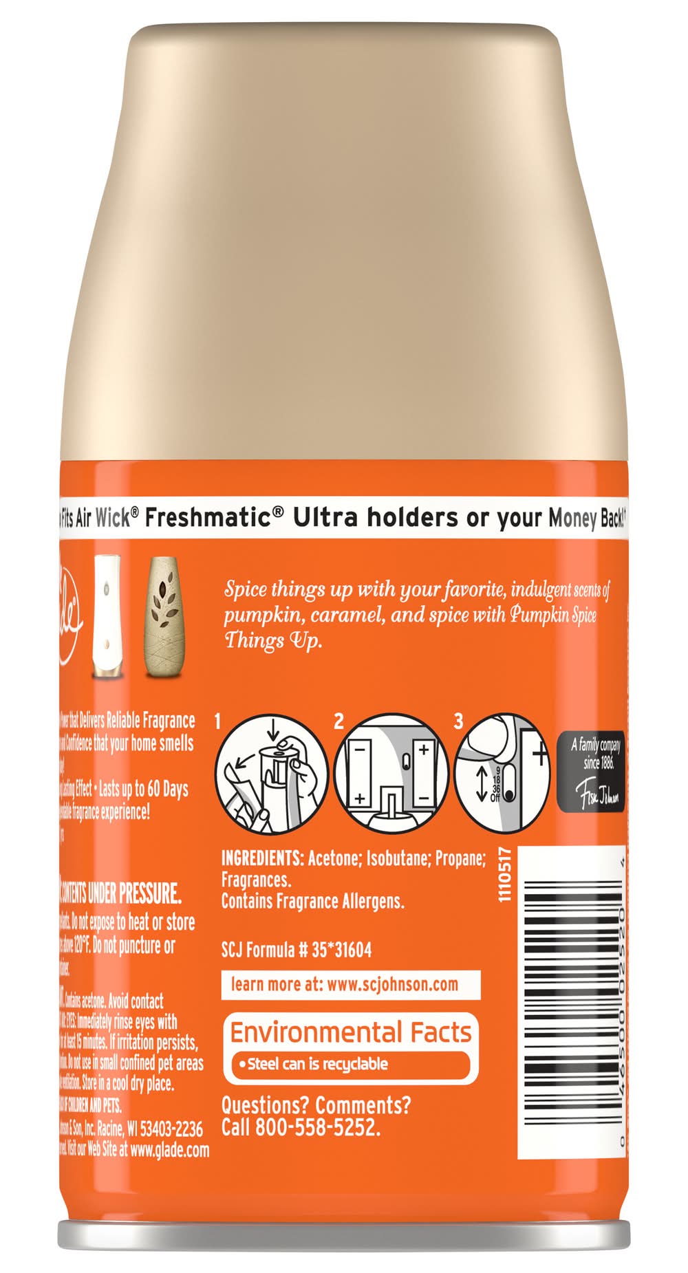 Uber Eats is available in hundreds of cities around the world. Enter your delivery address to shop for Glade Automatic Pumpkin Spice Things Up Air Freshener Spray delivery near you.