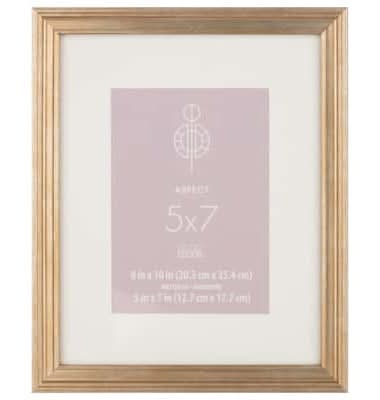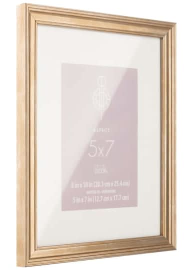 Get the Gold Narrow 5" x 7" with Mat Frame, Aspect by Studio Decor at Michaels. Quickly and easily preserve a moment in time with this gold colored narrow edged frame with mat from Aspect collection by Studio Decor. Gold colored . 5" x 7", 8" x 10" unmatted (12.7cm x 17.7cm, 20.3cm x 25.4cm unmatted) . Pre-attached D rings hardware attached . Display horizontal or vertical . Plastic, MDF and glass.