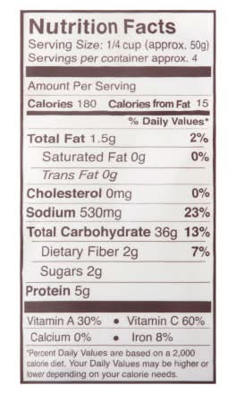Organic Rice, Organic Quinoa, Organic Millet Seed, Organic Red Bell Pepper, Salt, Organic Onion, Contains 2% or less of Organic Dried Cane Syrup, Organic Tomato, Organic Canola Oil, Organic Spices, Organic Garlic