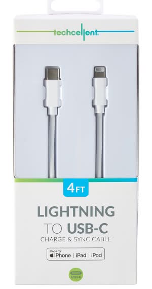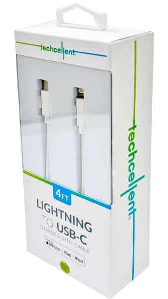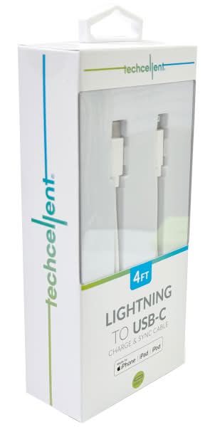 Techcellent lightning to Type C charge and sync cable, compatible with most iPhones, iPads, and iPods. Ensure a maximum charging speed of up to 2.2A charge faster than more standard cables, and work better for tablets and quick charge devices. Great performance ensures your devices sync and charge simultaneously with up to 480Mb/s USB2.0 version transferring speeds of 5V/2.4A, 9V/2.2A. • Color: White • Size: 4 ft • Packaging: Reusable