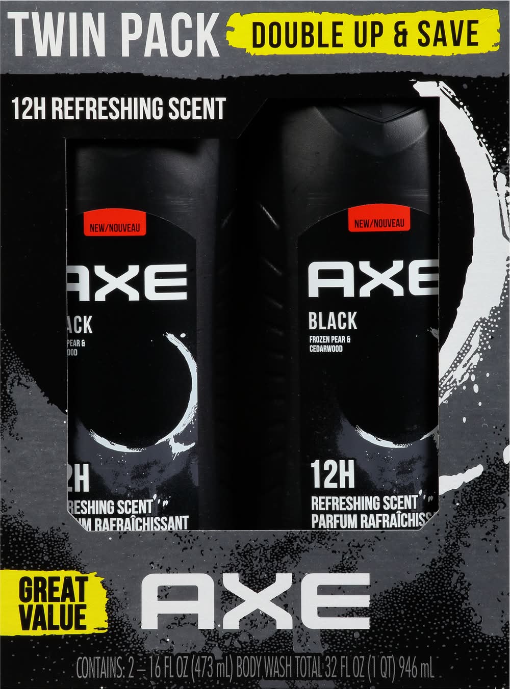 Axe Twin pack Great Value Body Wash, Black (16 fl oz, 2 ct)