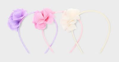 Cat & Jack Girls Chiffon Flower Headbands, Pink/Purple/White (3 ct)