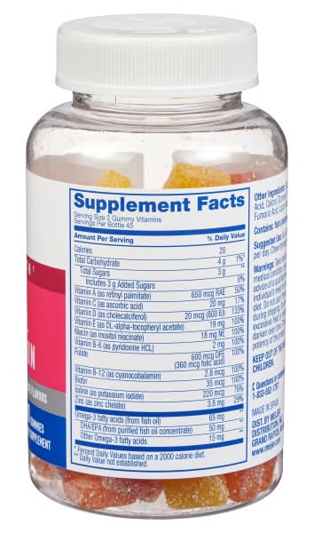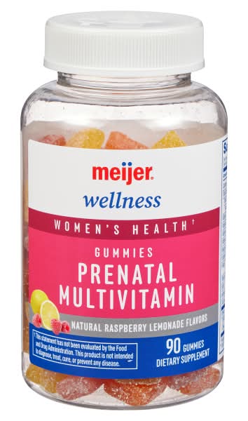Meijer Wellness Adult Prenatal Gummies are designed to support women's health during pregnancy. With a delightful blend of natural raspberry and lemonade flavors, these multivitamins offer a tasty way to supplement your diet.