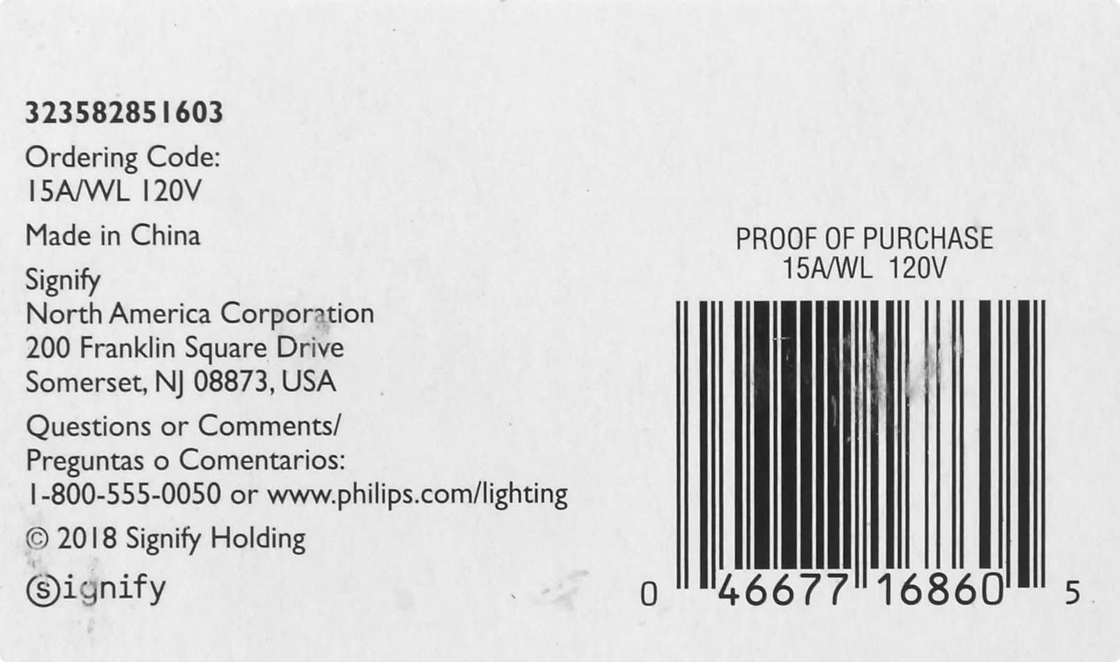 Lasts 2.5 + years. Brightness 80 lumens. Estimated energy cost $1.81 per year. Ideal for table and floor lamps. Provides soft, pleasant light. www.philips.com/lighting. Questions or comments: 1-800-555-0050 or www.philips.com/lighting. Made in China. Brightness Quantity: 80 lumens. Energy Info: $1.81 based on 3 hrs/day. 11 cents/kWh. Cost depends on rates and use. 15 watts. Package Info: 2. Voltage: 120 V. Bulb Info: Screw. Medium.. Bulb Life: 2.7 years based on 3 hrs/day. Bulb Appearance: 2300 k. Signify North America,