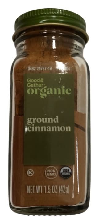 Bring sweet, comforting flavor to any recipe when you sprinkle the Organic Ground Cinnamon from Good & Gather™. This tasty ground cinnamon is perfect for adding a warm, sweet taste to anything from hot mulled beverages and teas to savory meat dishes and scrumptious desserts. It's USDA organic and comes in a convenient container that makes it super easy to store and dispense. Whether you’re livening up your oatmeal, pies, roasted meats or mulled wine, this ground cinnamon is a must-have staple for your pantry. Every product that carries the Good & Gather name starts with quality ingredients that deliver great taste, making it easier for you and your family to eat well, every day. We promise you’ll love each bite, or your money back.