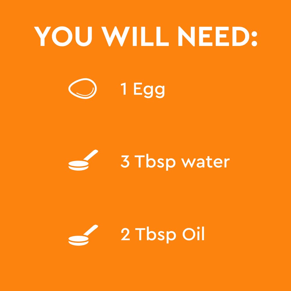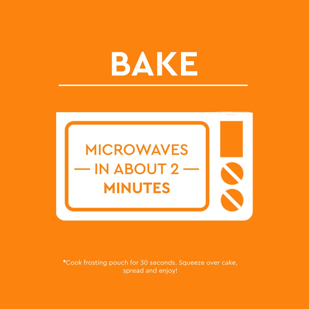 You will need: 1 egg; 3 tbsp water; 2 tbsp oil. do not eat raw batter. oven instructions: step (1) prep: preheat oven to 300 degrees f. step (2) mix: whisk cake mix, egg, water, and oil in large bowl until well blended. pour batter into the ungreased pan and spread evenly. step (3) bake: bake on rack in center of oven 28 to 33 minutes or until toothpick inserted in center comes out clean. remove cake carefully from oven with both hands using pot holders. cool cake completely in pan wire rack for 15 minutes. step 4. frost: knead frosting pouch 30 seconds. squeeze over cake, spread and enjoy! do not bake in toaster oven. you will need: 1 egg; 3 tbsp water; 3 tbsp oil. microwave instructions: step (1) mix: whisk cake mix, egg, water and oil in large bowl until well blended. pour batter into the ungreased pan and spread evenly. step (2) microwave: 1200 watt microwave cake on high 2 minutes. 1000 watt microwave on high 3 minutes 20 seconds. if microwave wattage is less than 1000 watts use oven instructions. cook cake in microwave for 2 minutes. cool knead frosting pouch 30 seconds squeeze over cake, spread and enjoy!