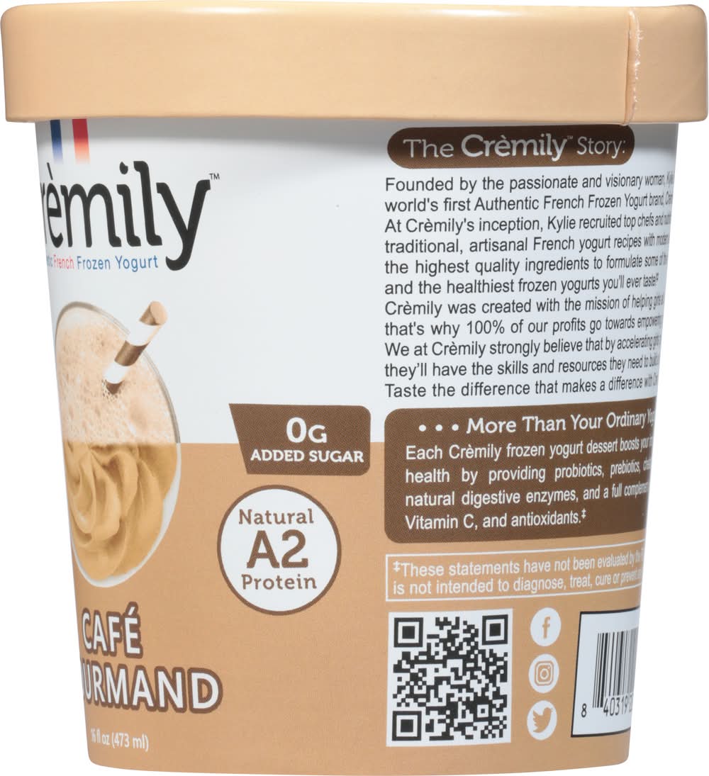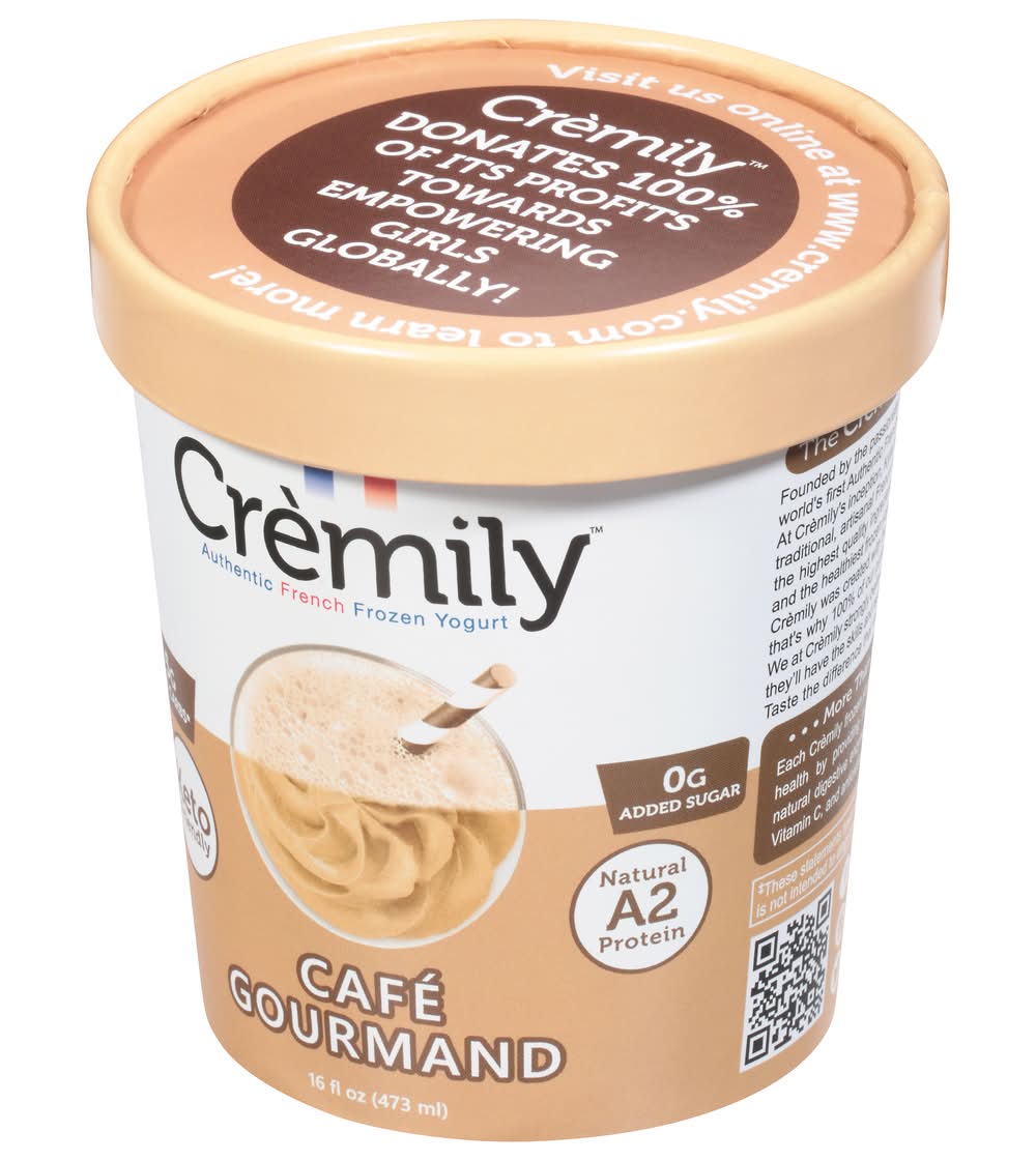 Authentic French frozen yogurt. 5g net carbs. 0g added sugar. Keto friendly. Natural A2 protein. The Cremily Story: Founded by the passionate and visionary woman, Kylie Schuyler, is the world's first Authentic French Frozen Yogurt brand, Cremily. At Cremily's inception, Kylie recruited top chefs and nutritionists to merge traditional, artisanal French yogurt recipes with modern techniques and the highest quality ingredients to formulate some of the most indulgent and the healthiest frozen yogurts you'll ever taste! (These statements have not been evaluated by the FDA. This product is not intended to diagnose, treat, cure or prevent any disease). Cremily was created with the mission of helping girls all over the world, that's why 100% of our profits go towards empowering girls worldwide! We at Cremily strongly believe that by accelerating girls' greatness today, they'll have the skills and resources they need to build a better tomorrow. Taste the difference that makes a difference with Cremily! More Than Your Ordinary Yogurts Each Cremily frozen yogurt dessert boosts your immune and gut health by providing probiotics, prebiotics, chelated minerals, natural digestive enzymes, and a full complement of Vitamin D, Vitamin C, and antioxidants (These statements have not been evaluated by the FDA. This product is not intended to diagnose, treat, cure or prevent any disease). www.cremily.com. Facebook. Instagram. Twitter. Cremily donates 100% of its profits towards empowering girls globally! Visit us online at www.cremily.com to learn more! These statements have not been evaluated by the FDA. This product is not intended to diagnose, treat, cure or prevent any disease. Cremily, Inc.,