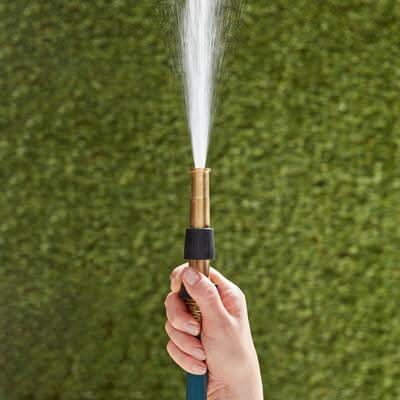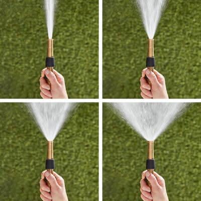 This nozzle adjusts from a fine mist to a heavy jet stream. It is great for watering delicate plants or cleaning patios, driveways and siding. It is made of heavy-duty brass and has a comfort grip. Cancer and Reproductive Harm - www.P65Warnings.ca.gov Size: 5 In