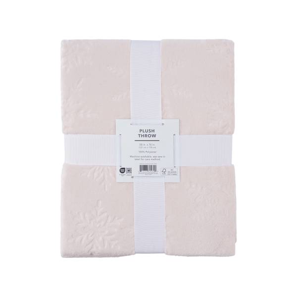 Meijer December Home Embossed Snowflake Plush Throw, 50 In X 70 In, Blush