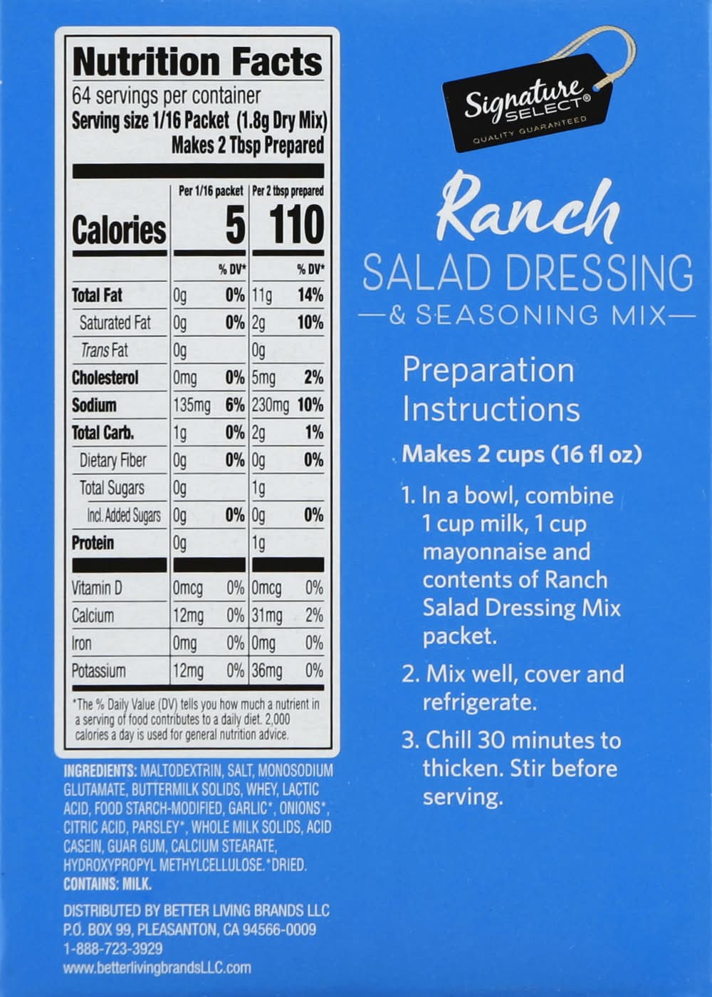 Salad Dressing & Seasoning Mix, Ranch Better Living Brands,