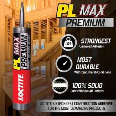 Loctite PL Premium Max is our strongest, most durable construction adhesive that remains 100% solid after curing thanks to the unique high solid content adhesive technology. Ideal for most interior or exterior projects where long-term strength and durability are a must, Loctite PL Premium Max works reliably on wood, laminate, drywall, concrete, brick, masonry, stone, marble, metal, stainless steel, fiberglass, and other substrates. This high-str WARNING: Cancer and Reproductive Harm www.P65Warnings.ca.gov. Color: Grey