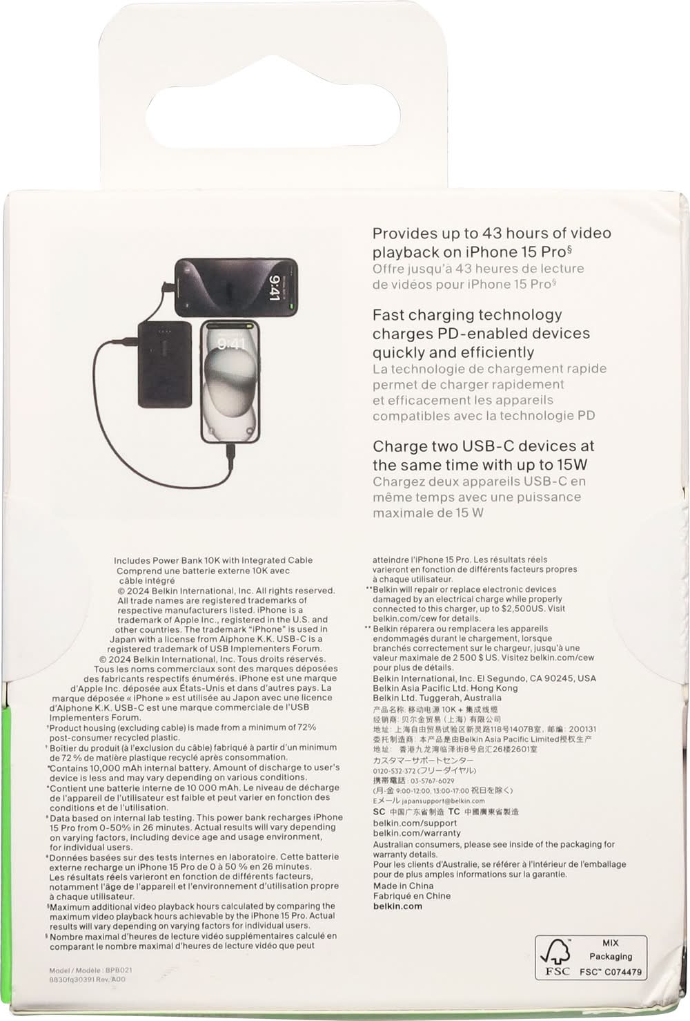 Power Bank 10K, with Integrated Cable, Boost Charge