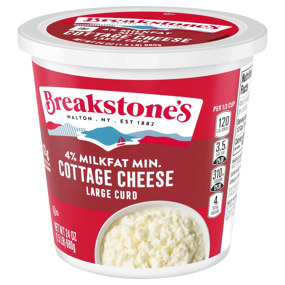 Breakstone’s 4% milkfat large curd cottage cheese is delicious, creamy, and packed with protein. Enjoyed on its own, as a side dish, a protein snack for lunch or an ingredient in a variety of recipes, Breakstone’s cottage cheese is extremely versatile. With over 140 years of heritage, Breakstone’s pays tribute to cultured dairy by bringing delicious high-quality dairy to your home.