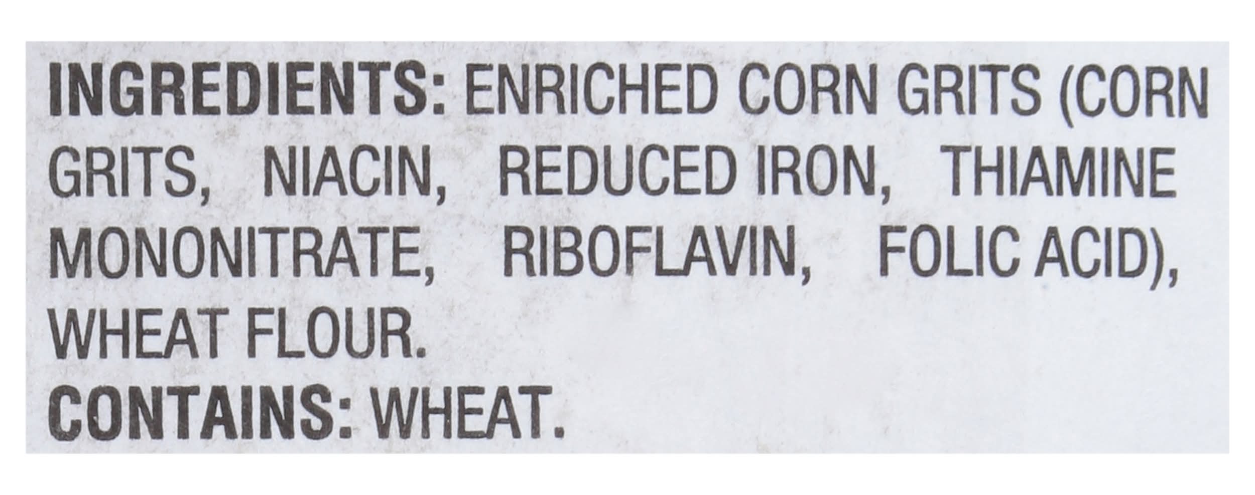 Enriched Corn Grits (Corn Grits, Niacin, Reduced Iron, Thiamine Mononitrate, Riboflavin, Folic Acid), Wheat Flour Contains: Wheat, Corn