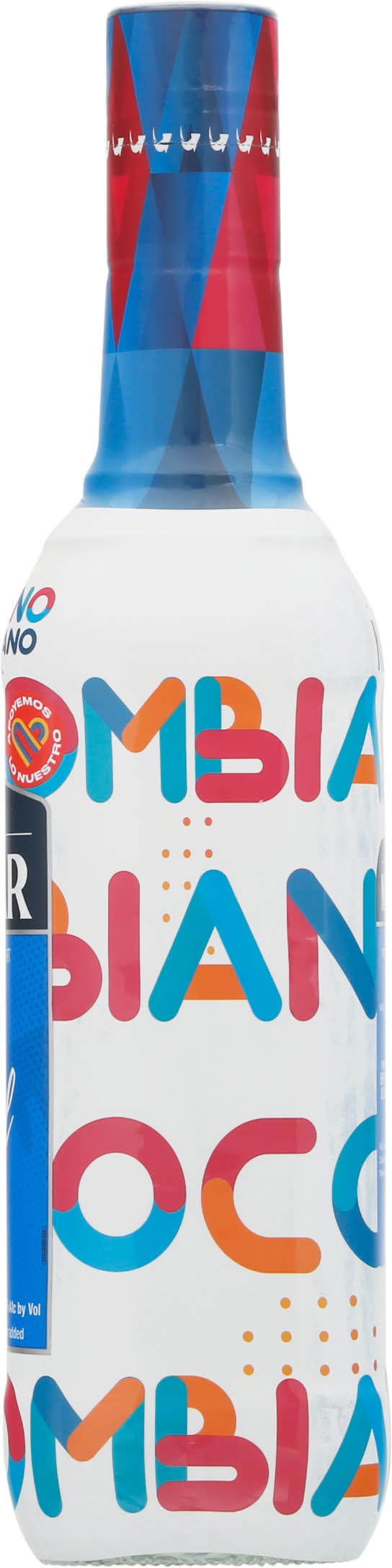 Cane natural spirits with natural flavor added. Per 2.5 fl oz average analysis: 82 calories; 0 g carbohydrates, 0 g protein; 0 g fat. www.mgbcorp.com. 29% alc by vol. 58 Product of Columbia. • Alcohol by volume: 24% • Marketing Global Brands Corp,