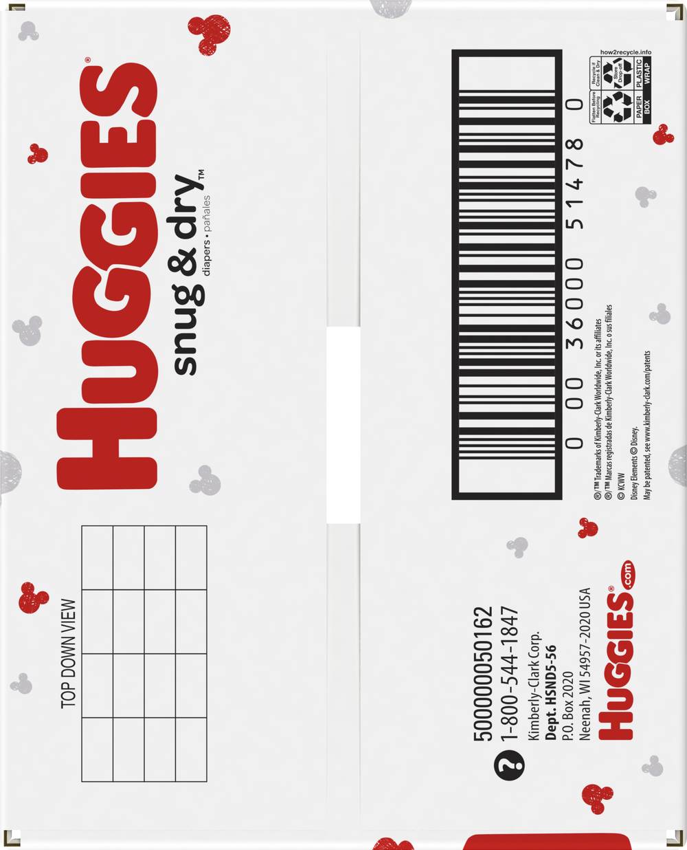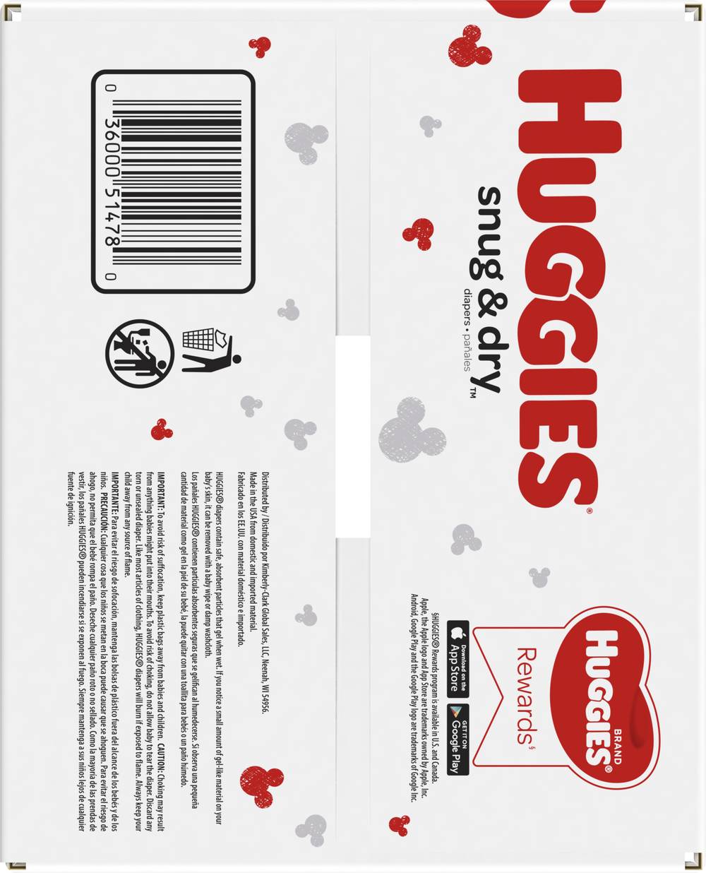 Absorbs in seconds. Unbeatable protection (vs. a value brand). Huggies diapers contain safe, absorbent particles that gel when wet. If you notice a small amount of gel-like material on your baby's skin, it can be removed with a baby wipe or damp washcloth. Huggies absorbent technology. Huggies contoured shaped diaper. Huggies wetness indicator. Up to 12 hour day or night protection. Free of fragrances, parabens, elemental chlorine, and natural rubber latex. huggies.com. how2recycle.info. 1-800-544-1847 Kimberly-Clark Corp. Dept. HSND5-56 PO Box 2020 Neenah, WI 54957-2020 USA. Huggies: Rewards (Huggies rewards program is available in U.S. and Canada). Download on the App Store. Get it on Google Play. Dispose of properly. Made in the USA from domestic and imported material.