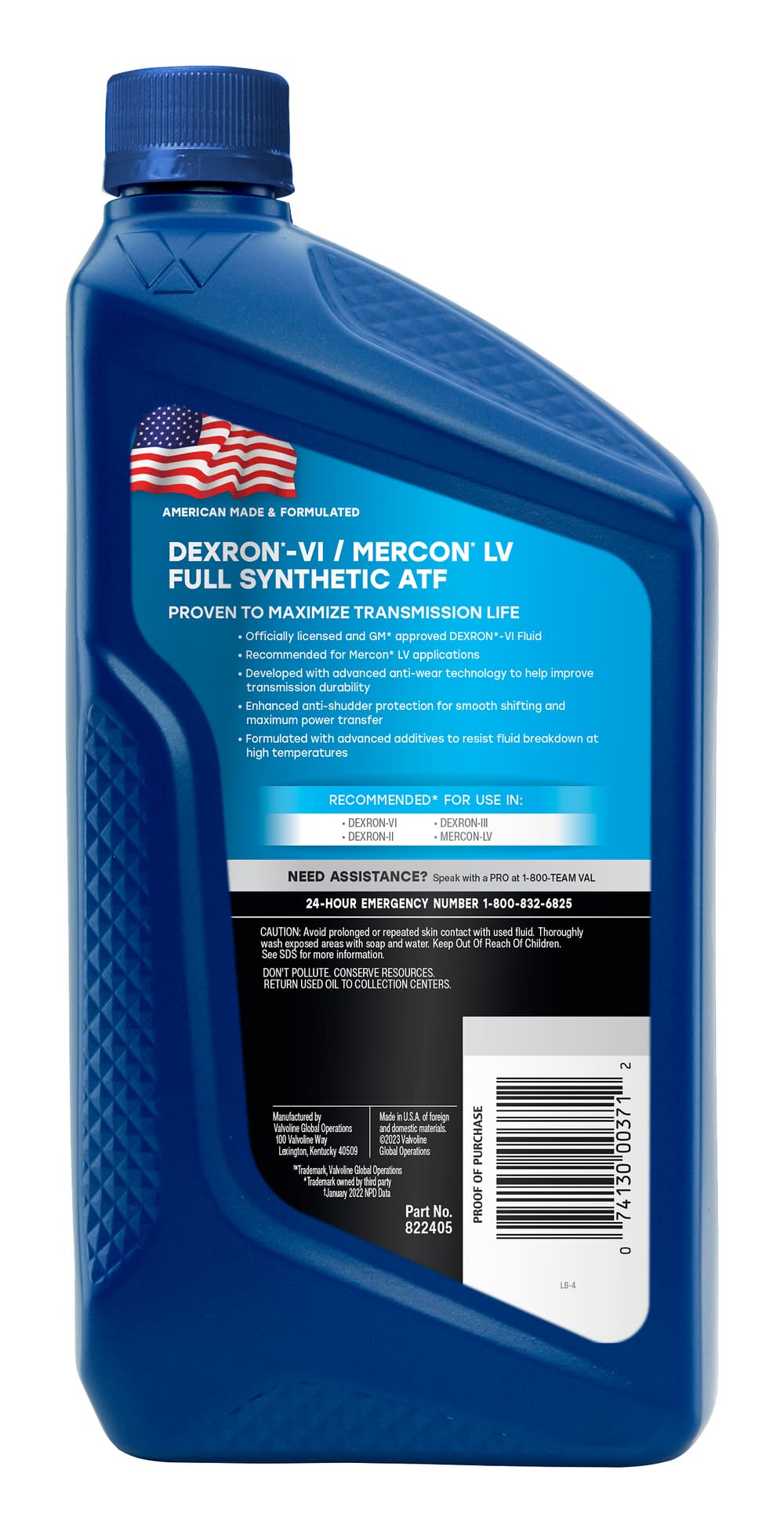 Valvoline DEXRON*-VI/MERCON* LV ATF is a full-synthetic transmission fluid, crafted using advanced additive technology. It meets and exceeds the specifications set by General Motors* for DEXRON*-VI and is officially licensed and approved by GM*. This product is versatile, fully back-serviceable, and suitable for both new and older GM transmissions. It is also compatible for use in systems where DEXRON*-II or DEXRON*-III fluids are recommended.