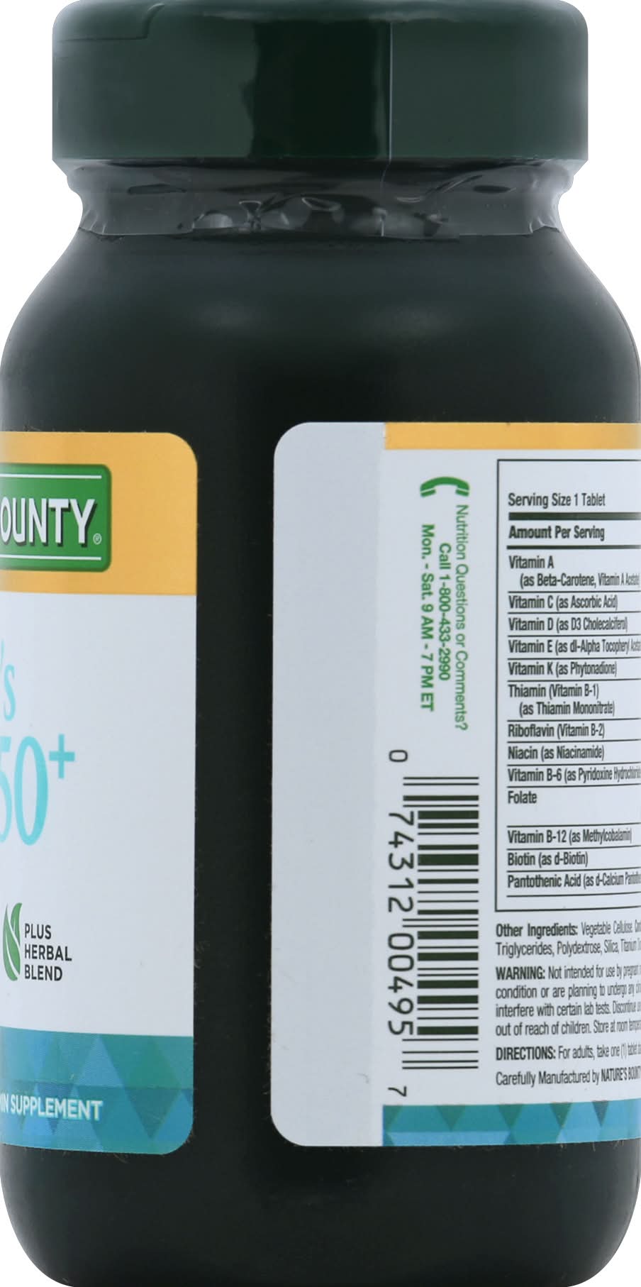 Nature's Bounty Complete Multivitamin With Bioavailable Active Form Of B-12. New! Plus Herbal Blend Men's Multi 50+ (5.04 oz)