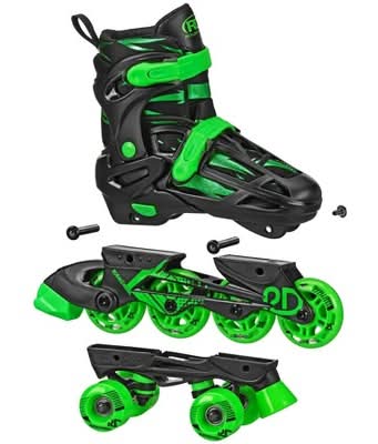 Roller Derby Adjustable Inline Quad Combo Skates, M, Black-Green