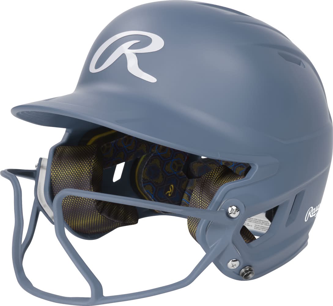 Rawlings Mach Hi-Viz 1-tone Matte Batting Helmet With Attached Face Guard, Blue