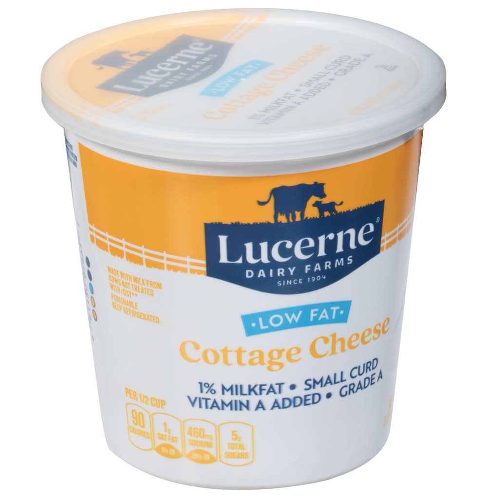 Cottage Cheese, Low Fat, Small Curd, 1% Milkfat • Lucerne Foods, Inc., PO Box 99,Pleasanton,CA 94566-0009 • Packaging: Reusable