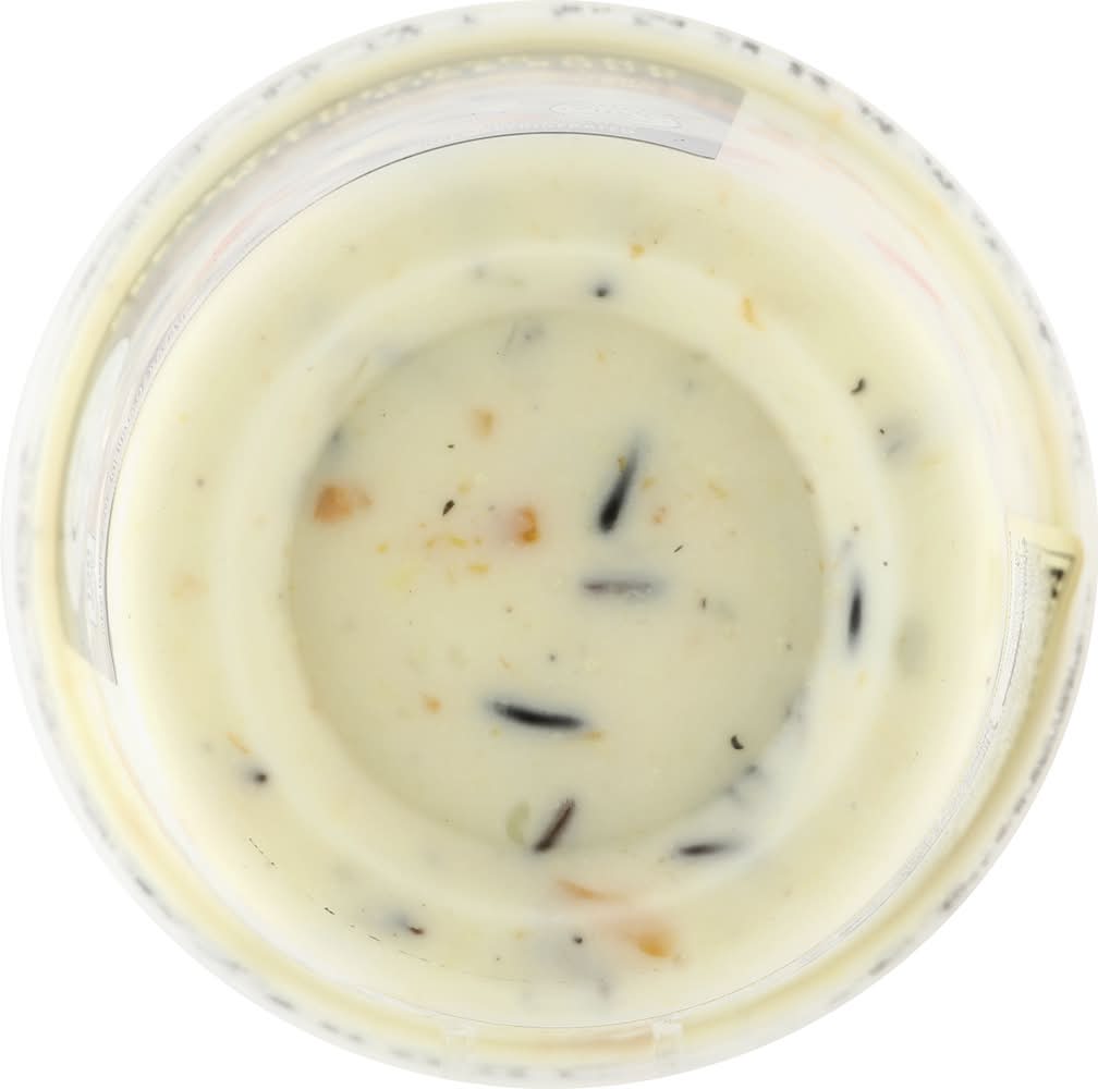 Water, Milk (Milk, Vitamin D3 Added), Heavy Cream (Cream, Milk, Less than 1% of Carrageenan, Mono and Diglycerides, Cellulose Gum, Polysorbate 80), Cooked White Meat Chicken (Cooked White Meat Chicken, Water, Potassium Lactate, Sodium Polyphosphate, Salt), Onions, Celery, Chicken Flavored Seasoning (Salt, Dextrose, Beef Fat, Maltodextrin [from Corn], Canola Oil, Wheat Starch, Natural Flavoring, Chicken Fat, Chicken, Hydrolyzed Corn Gluten and Soy Protein, Disodium Inosinate/Disodium Guanylate, Turmeric and Parsley), Contains Less than 2% of Rice (Medium Grain Rice, Iron Phosphate, Niacin, Thiamine Mononitrate, Folic Acid), Sodium Lactate, Carrots, Wild Rice, Modified Corn Starch, Garlic, Canola Oil, Flavoring (Maltodextrin [Corn], Salt, Yeast Extract), Spices. Contains: Milk, Soybeans, Wheat, Gluten