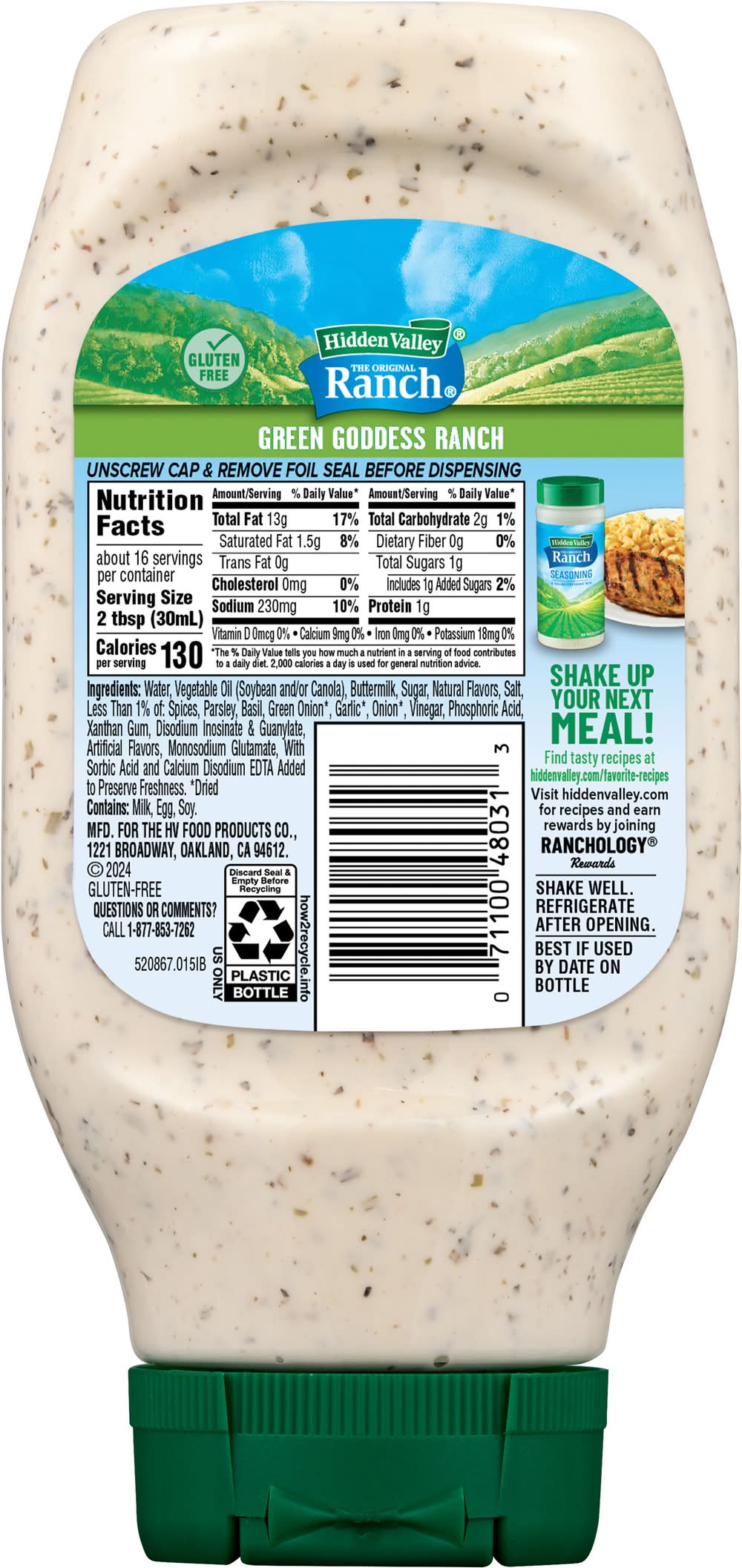 Bottled Hidden Valley EZ Squeeze Original Ranch w/ Green Goddess 16fo Flavor: