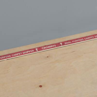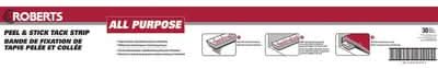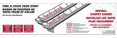 ROBERTS 20-1450 Smooth Edge Tack Strip is a peel and stick tack strip that grips instantly and allows for immediate stretching. Designed to make carpet installation easy and can withstand standard power stretching. Use by peeling off adhesive backing, point pins towards the wall and stick to the sub floor approximately 1/4 in. from the wall, stretch carpet as usual. Size: 7/8 In. X 4 Ft