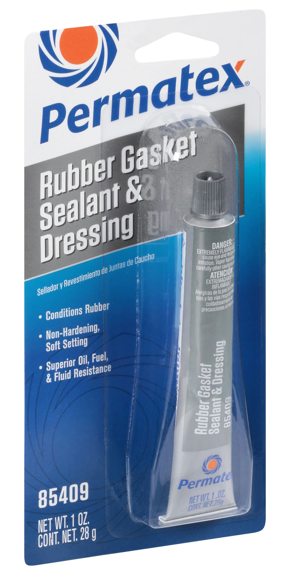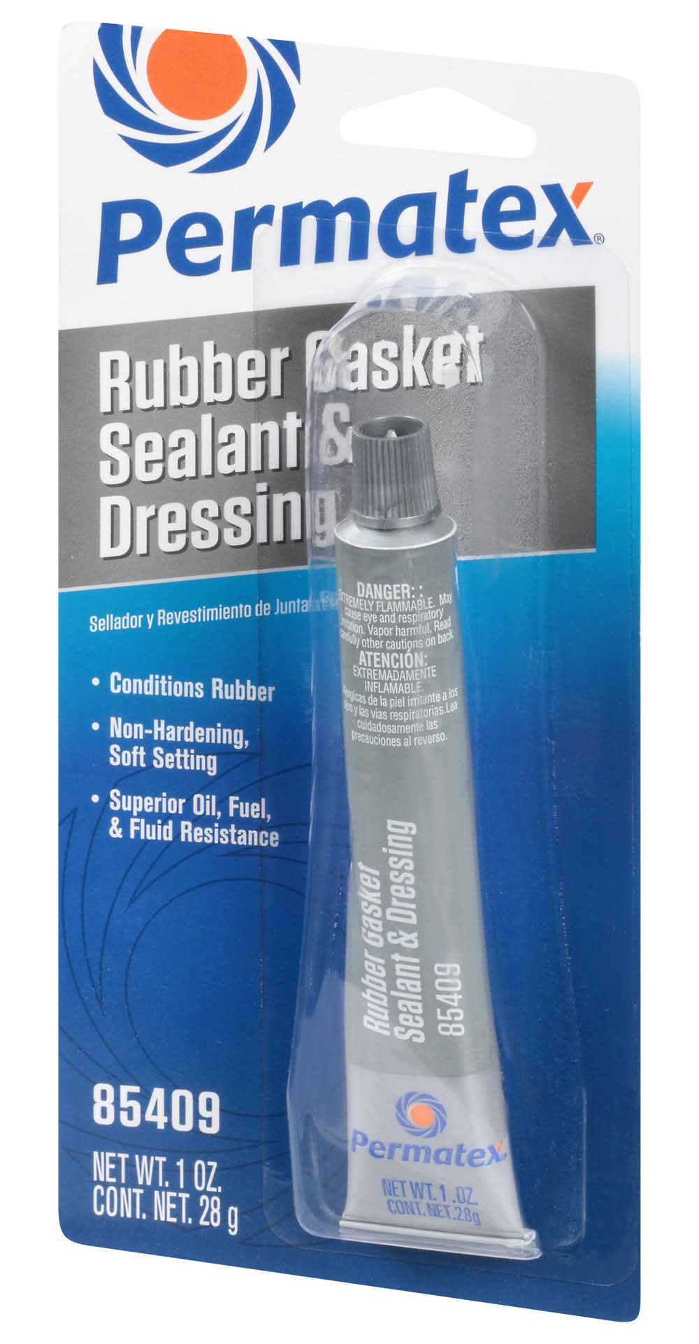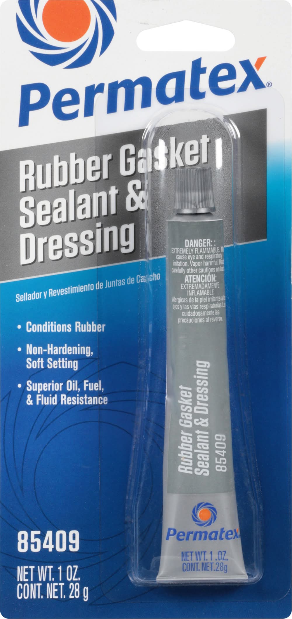Conditions rubber. Non-hardening, soft setting. Superior oil, fuel, & fluid resistance. Permatex rubber gasket sealant & dressing is designed to complement the installation of cut or molded rubber gaskets. Flexible and non-hardening, it holds gaskets in place for easy, exact placement and is forgiving enough to allow repositioning during assembly. www.permatex.com. Toll Free: 866-732-9502. Assembled in U.S.A. with U.S. and global materials. Illinois Tool Works Inc.,