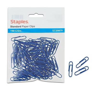 Staples Vinyl Coated Paper Clips, Blue (100 ct)