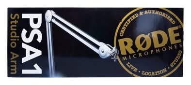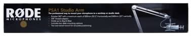 The PSA1 is a studio boom arm for radio, broadcast, studio and home use. It provides full 360 degree rotation. The PSA1 has a horizontal reach of 820mm(32.3 inches), and a vertical reach of 840mm (33.1 inches). It is supplied with velcro cable wraps and both desk-clamp and desk-insert style attachments for versatile mounting in desks up to 55mm (2.2 inches) thick (clamp) or 70mm (2.76 inches) insert.Designed for the RØDE Procaster and Podcaster, the PSA1 supports most microphones weighing between 700g (1.5lb) and 1.1kg (2.4lb) when combined with shock mount. Please note that the PSM1 shock mount is sold separately.