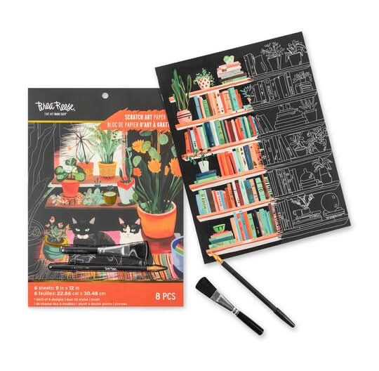 Get this Brea Reese 9" x 12" Cozy Cats Scratch Art Paper Pad at Michaels. Featuring swirls of shimmering metallic and bursts of color, these scratch art patterns will quickly reveal incredible works of art through a guided illustration that’s easy to follow. Includes assorted designs. 8 piece kit. Conforms to ASTM D-4236 . 6 designs sheets 1 dual tip stylus . 1 dual tip stylus 1 brush.