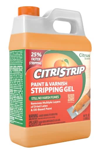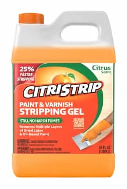 For even the newest DIY'er, CITRISTRIP is the effective brand of removers that has a fresh citrus scent. Use CITRISTRIP to remove multiple layers of dried latex and oil-based paint, varnish, lacquer, polyurethane and shellac from wood, metal and masonry surfaces. Removes five layers of dried latex paint in under one hour. Helpful Tips: Test in an inconspicuous area before use on any synthetic surface as strippers can damage these surfaces. Keep out of reach of children. Packaging: Reusable
