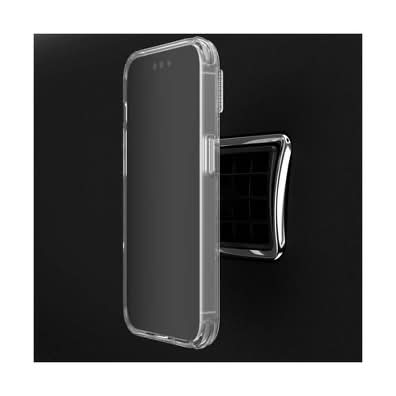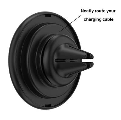 Keep your focus where it belongs (on the road ahead) with a car mount that connects seamlessly to MagSafe compatible cases - Easily attach / detach to iPhone 12, 13, & 14’s magnets. Securely clips onto vertical, horizontal, and angled air vents. Attachment prongs can be rotated to hold onto thick or thin air vents. Color: Black