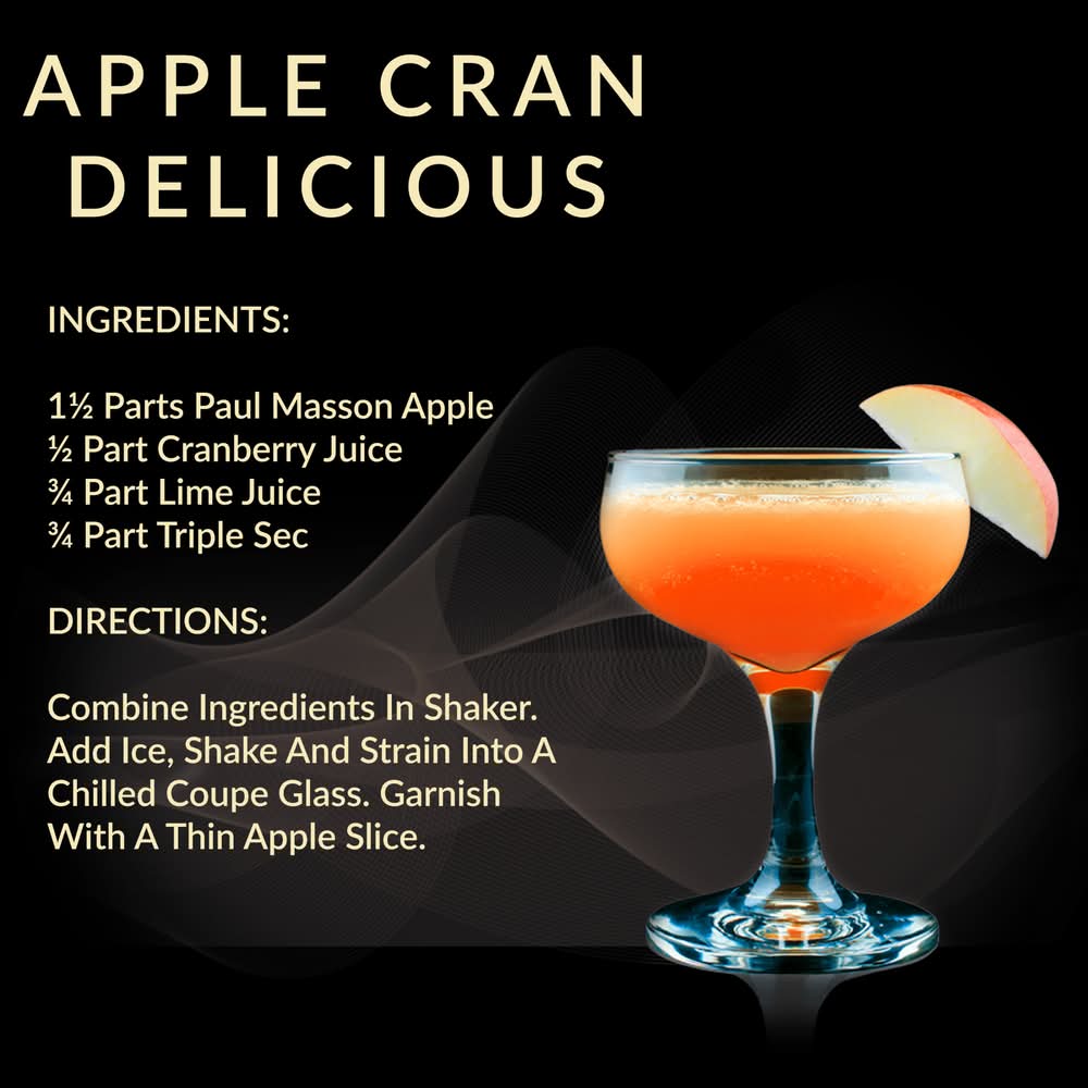 Define your moment with the sweet, lush flavor of Apple Brandy. Crafted using only the finest grapes and crisp apples. Individually aged at least four years, this dark amber brandy features tasting notes of oak spice, ginger, vanilla, dark chocolate and the subtle, yet refined, presence of the American oak bourbon barrel This Brandy tastes great served on the rocks at 27% alcohol by volume and is the perfect complement to your favorite mixer. Enjoy this liqueur in a Apple Ade Sangria or PM Apple Press, or use PM Apple Brandy for a flavorful twist on classic brandy cocktails like a sidecar, sazerac or French 75. For more than 70 years, Paul Masson spirits have provided great flavor and smooth taste to elevate any social occasion. Store Paul Masson at room temperature until you’re ready to enjoy the ultimate blend of American brandy. For moments at ease, Paul Masson Flavors bring a relaxed, chilled out vibe to the table. Alcohol by volume: 27%