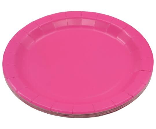 Serve delightful meals to your guests in these round paper plates from Celebrate It. The dark pink hue will be perfect for any special occasion or get-together.. 9" (22.8 cm) diameter . 10 plates • Color: Dark pink • Size: 9 in