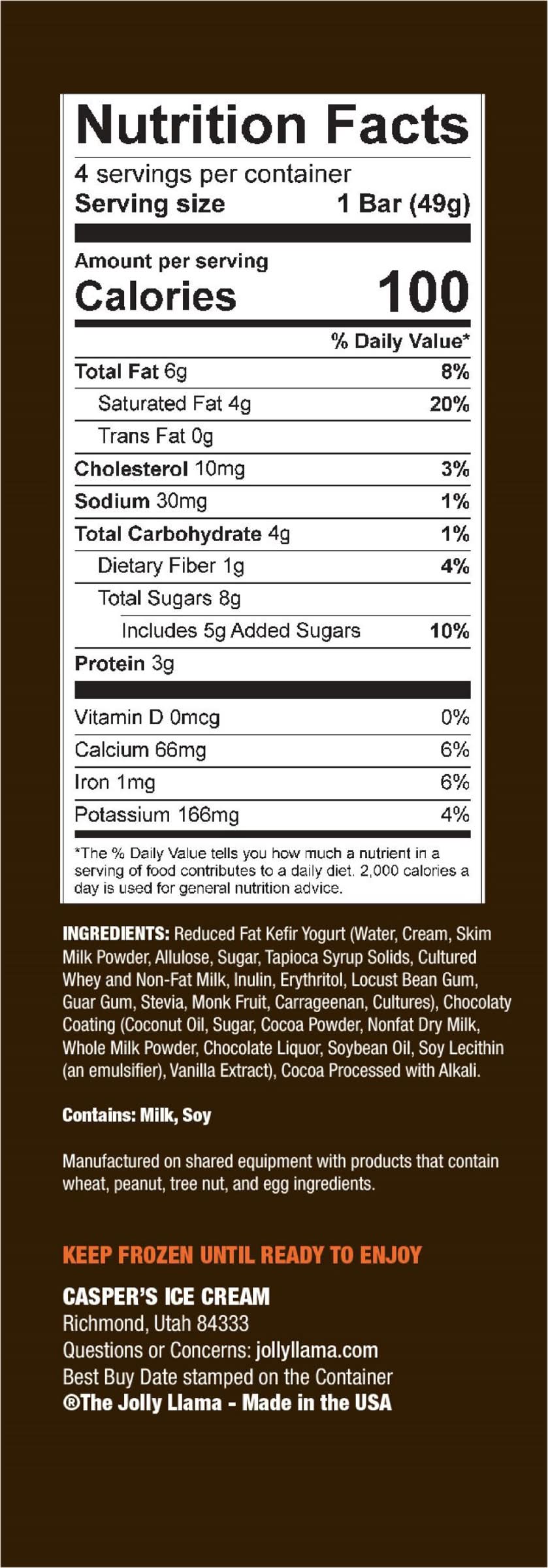 Jolly Llama Half Dipped Fudge Yogurt Bars, Chocolate (2.65 fl oz, 4 ct)