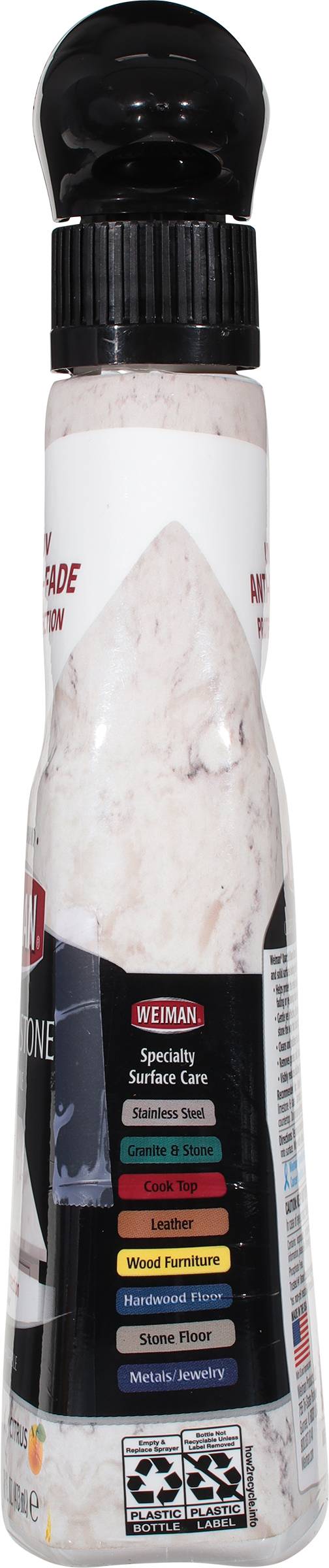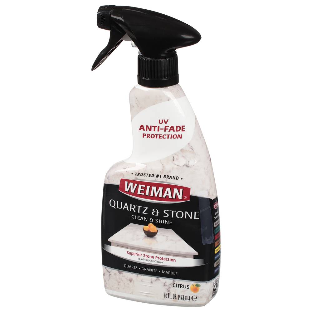 UV anti-fade protection. Trusted no. 1 brand. Quartz & stone. Superior stone protection. vs. All-purpose Cleaner (vs. non-pH neutral all-purpose cleaners). Quartz. Granite. Marble. Weiman Quartz 8 Stone Clean & Shine is specially formulated to keep your sealed stone and solid surfaces looking their best every day. Helps protect the resins used in manufacturing quartz and some natural stones from fading or yellowing due to exposure to sunlight. Gentle yet effective, pH-neutral formula will not dull or damage quartz and natural stone the way that harsh chemicals found in some household cleaners can. Cleans and polishes to a brilliant streak-free shine. Removes grease, soil, stains & water marks. Visibly reduces dullness and enhances natural color and veining of natural stone. Phosphate free. Trusted no. 1 brand based on syndicated retail sales of granite & stone cleaners. Specialty Surface Care: Stainless steel. Granite & stone. Cook top. Leather. Wood furniture. Hardwood floor. Stone floor. Metals/jewelry. weiman.com. how2recycle.info. For more information, please visit weiman.com or call 800-837-8140. Weiman proudly supports the National Ovarian Cancer Coalition. Learn more at Overian.org. More great products. Made in the USA with US and imported parts. Weiman Products, Llc, 755 Tri-State Parkway,Gurnee,IL,60031,USA