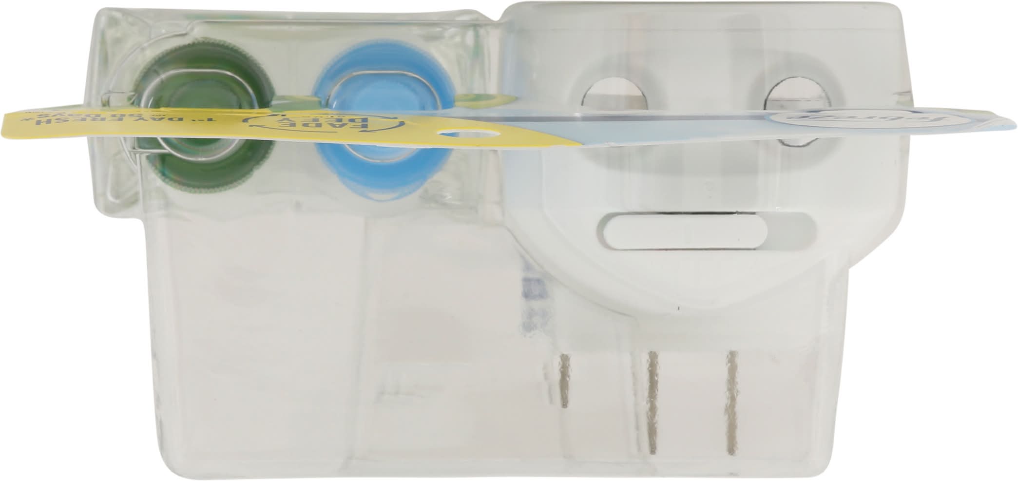Fade defy plug. 1st day fresh for 50 days (on low). With low-level indicator light. Scratch and sniff. Formulated with: no dyes; phthalates; no formaldehyde. Low level indicator. Blue light flashes when it might be time to refill. Febreze warmer has a blue light that: flashes twice when first plugged in to show it's working. Flashes continuously when it may be time for a new refill. Modifier Good Housekeeping: Since 1909. Limited warranty to consumers. Replacement or refund if defective. UL listed. www.pg.com. www.febreze.com. Questions? 1-800-699-4657; www.febreze.com. Terracycle: Recycle at Terracycle.com. Warmer made in China. Refill assembled in Mexico. • Size: 2 CT • Procter & Gamble, Cincinnati, OH, 45202, Ph: 800-699-4657