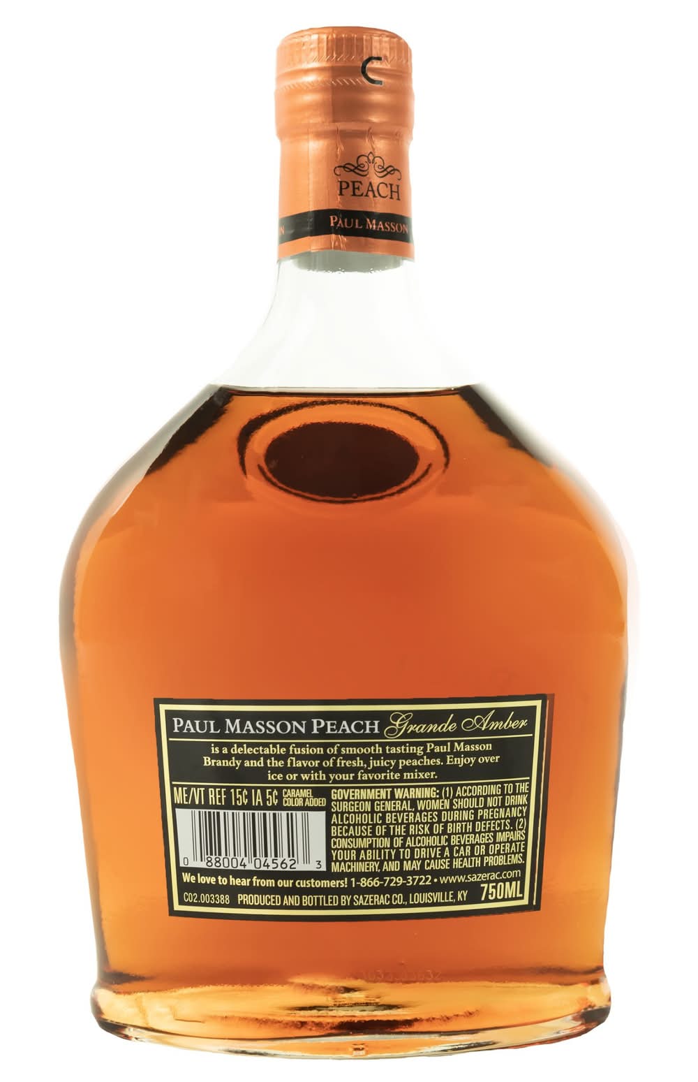 Paul Masson Grande Amber Peach Brandy 750ml 54 Proof • Alcohol by volume: 27% • Sazerac GDSN Production - ProductXM,